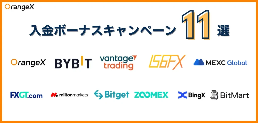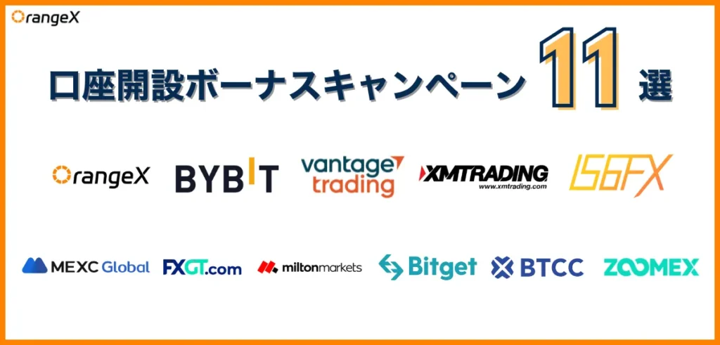 それでは、各取引所の口座開設ボーナスについて全11社を紹介していきます!