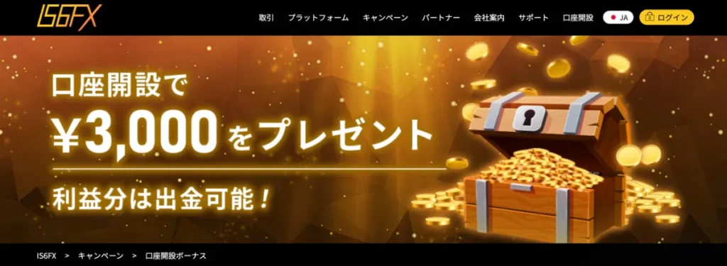 - IS6FX: 最大3,000円の口座開設ボーナス