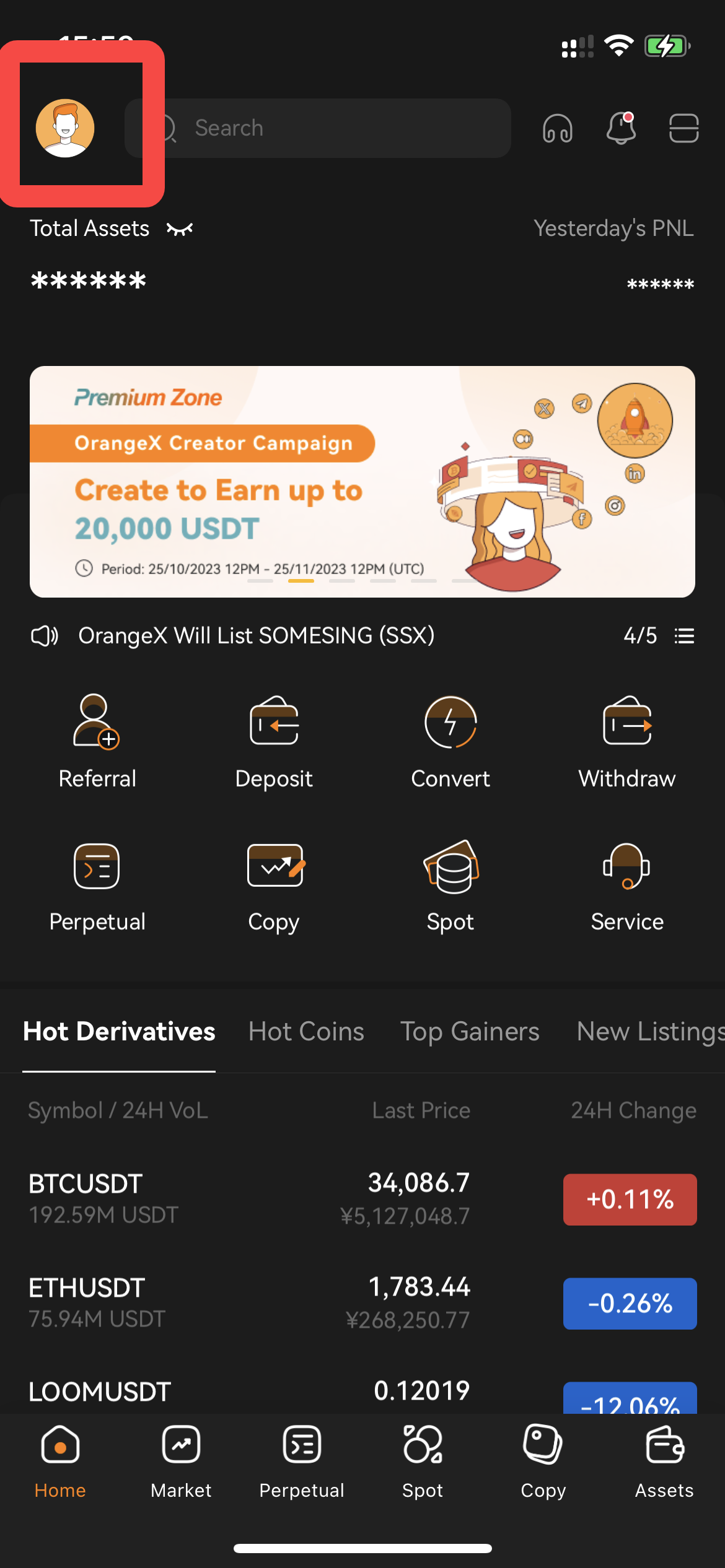 Step 1: Click on the profile icon at the upper left corner on the home page to enter into the Security page.